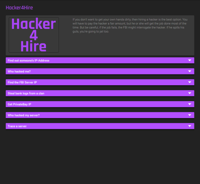 Do not impersonate other hackers or the Game Administration. If you are caught impersonating it will first result in jailtime. A second violation of this rule will get you banned.